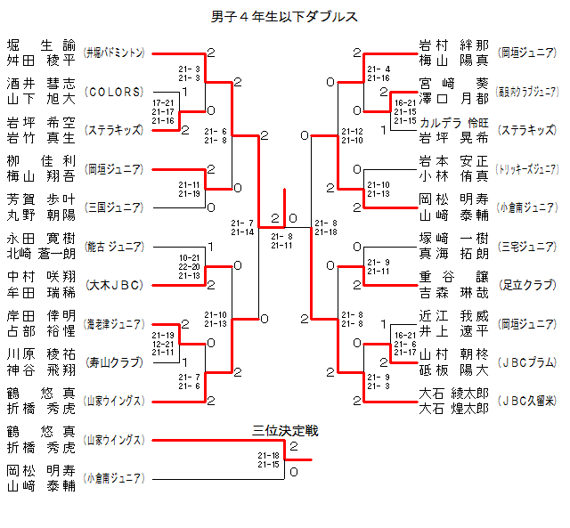 | 4BD-4 | ‚i‚a‚bƒvƒ‰ƒ€ | ŽR‘º ’©•AE“u” —z‘å | ‚Q | 16-21 21- 6 21-17 | ‚P | ‹ß] ‰äˆÐEˆäã —É•½ | ‰ªŠ_Jr. | |