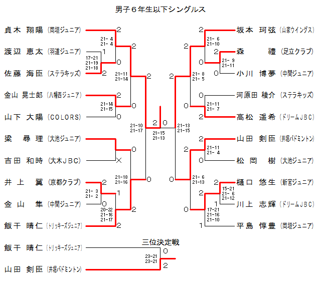 | 6BS-6 | ”ª”¦¼Jr. | ‹àŽRWŽm˜Y | ‚Q | 21-14 21-15 | ‚O | ŽR‰º ‘å—z | ‚b‚n‚k‚n‚q‚r | |