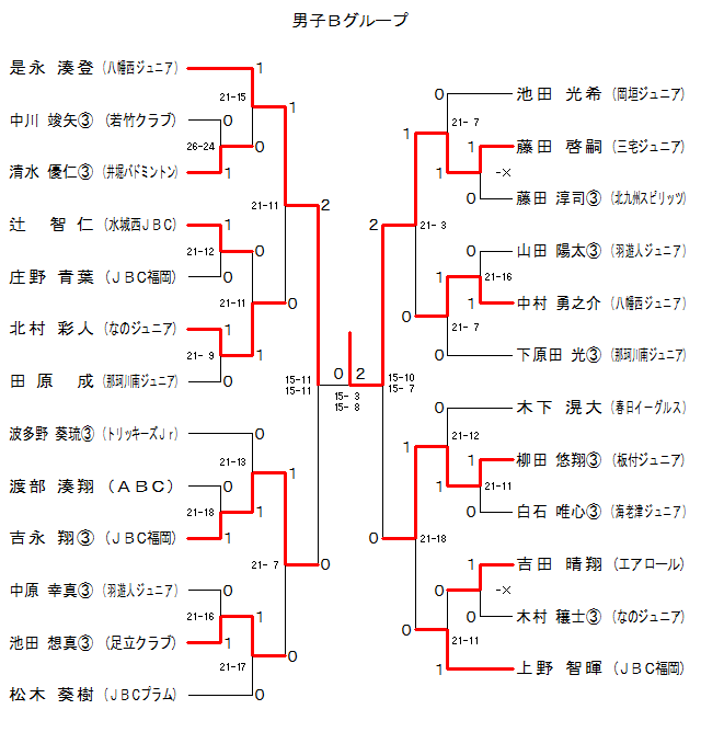 | BB-23 | ŽO‘îJr. | “¡“c Œ[Žk | ‚Q | 15-10 15- 7 | ‚O | –ö“c—IãćB | ”•tJr. | |