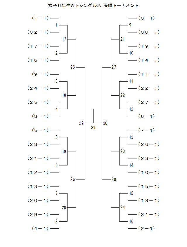 | 女子6年生以下シングルス 31ブロック | 山田 | 内田 | 古賀 | 順位 |